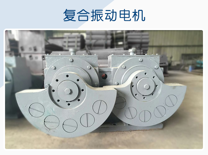 復合振動電機是由兩組激振系統產生的,有雙頻復合型以及雙幅復合型兩種形式,典型的如篩分機上所使用的振動電機類型相似。